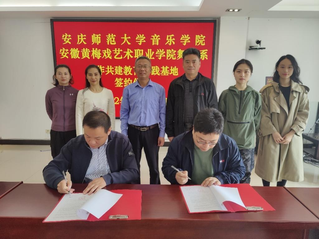 10月25日,我院与安徽黄梅戏艺术职业学院舞蹈系举行舞蹈表演专业实践教学基地合作共建签约暨授牌仪式。院党委书记张铭、副院长徐冉、舞蹈专业教师代表,安徽黄梅戏艺术职业学院党委副书记、院长陈二祥,相关处室、系部负责人参加仪式。