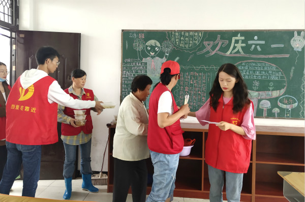 今年7月份以来,安徽省南方多地区发生洪灾,团队成员王慧娟、何冉等同学投身于家乡的抗洪救灾工作中。王慧娟是音乐学专业2018级(1)班的学生,当涂县防汛形势严峻,当涂团县委组织了20多名青年志愿者赴团小安置点,帮助和抚慰转移群众。王慧娟主动报名,与他的父亲一同成为抗洪志愿者。打扫卫生、整理物品,她和乡亲们拉拉家常,送上热水热饭,什么活都干。王慧娟说:“作为一名志愿者,面对灾情能够贡献自己微不足道的力量,我感到非常自豪,也感受到了学校学的什么是社会责任感。”