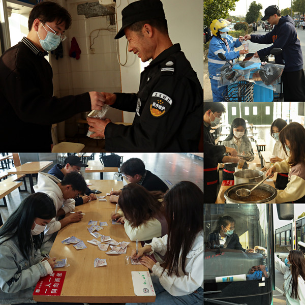 “希望您工作顺利。”“一定会有好事发生。”音乐学专业2020(4)班的荣波涛带领太阳集团tyc9728向日葵志愿服务队亲手制作了近60杯红枣银耳汤,并粘贴写满祝福的便签。“您好,这是我们亲手做的红枣银耳汤,感谢你们爱岗敬业,辛苦了!”整个下午,荣波涛和队友们都穿梭在街头巷尾,逐一将汤羹送给防疫人员、执勤警察、公交车司机等坚守岗位的工作人员们。