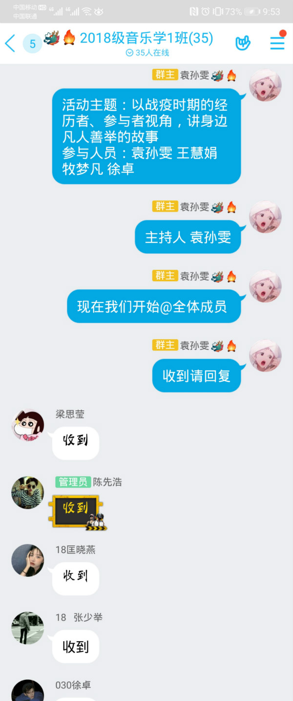我院各班级在线上开展演讲活动,学生们根据疫情期间党的抗疫举措,结合自身经历和感想进行讲演,分享故事,弘扬抗击疫情正能量。班级辅导员和所有同学都是评委,见证了线上每一场演讲。