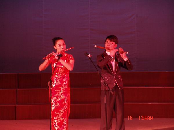 演出在一曲欢快的《紫竹调》乐声中拉开了序幕,同学们通过钢琴、萨克斯、竹笛、古筝等不同乐器展示了一年来专业学习成果:通过自编自导的古典舞《舞雪》和印度舞《烈焰红裙》展示出了他们活力与风采;通过高亢甜美的歌声展现出他们的激情;一首朗诵《青春不留白》,配以各年代独具特色的服装,演绎出60、70、80、90年代青年的热情与活力,显示出青年人的激情、勇敢与责任,让在场的观众为之感动;由杨瑾老师编排的歌舞《谷穗上的蝈蝈》,让观众领略了一群可爱的小机灵——小蝈蝈在谷穗上玩耍的美景,全场掌声热烈,将演出推向高潮,演出在班级大合唱《大学生圆舞曲》的和谐乐声中落下了帷幕。