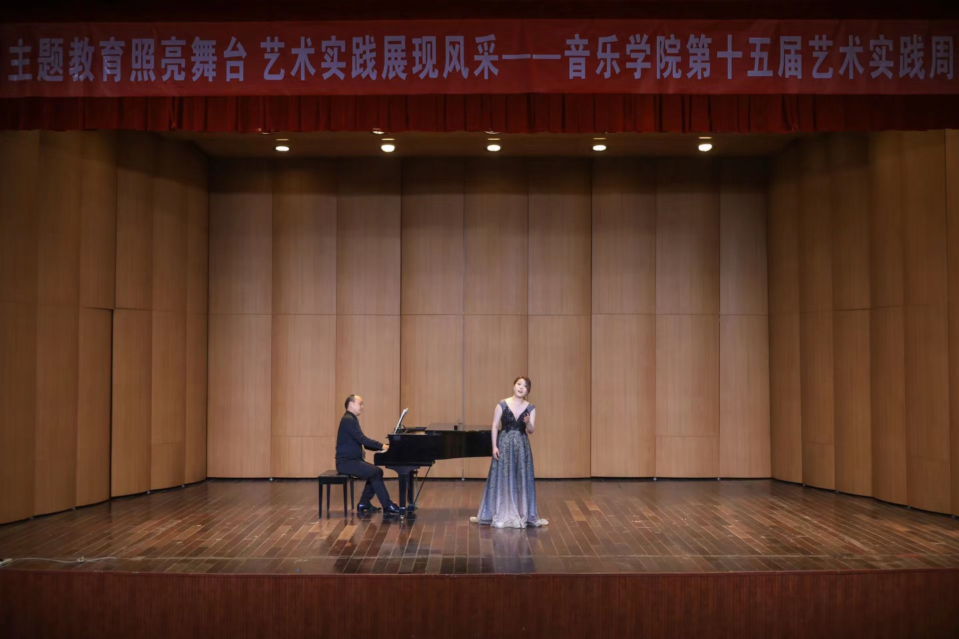 “何处望神州?满眼风光北固楼……”5月26日,在教师杨飞虎伴奏、教师张剑雨演唱的《南乡子·登京口北固亭有怀》旋律中,太阳集团tyc9728第十五届艺术实践周青年教师专场演出在音乐厅拉开序幕。学院党委书记张铭、副院长徐冉、党委副书记肖之进、副院长彭传山出席活动。9位学院青年教师登上舞台,带来示范表演,400余名学生到场观看演出,享受听觉“盛宴”