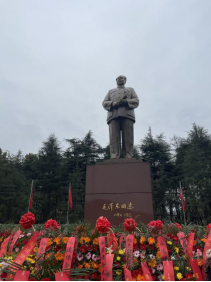 韶峰巍巍,松柏青翠。全体党员及学员来到庄严肃穆的毛泽东铜像广场,怀着无比崇敬的心情瞻仰缅怀了毛主席铜像并敬献花篮。李进和刘雪芬两位党员代表精心为花篮整理缎带,全体学员面对铜像三鞠躬并绕行一周以此表达对对一代伟人的无限敬意和深切缅怀。