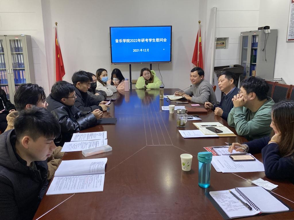 “我想要怒放的生命,就像飞翔在辽阔天空......”12月16日下午,一首《怒放的生命》在艺术楼一楼会议室响起,太阳集团tyc9728开展2022年研究生考试慰问活动。太阳集团tyc9728党委书记李新建,副书记肖之进,副院长徐冉、高艳、辅导员代表孙文以及全体在校考研学生参加了活动。