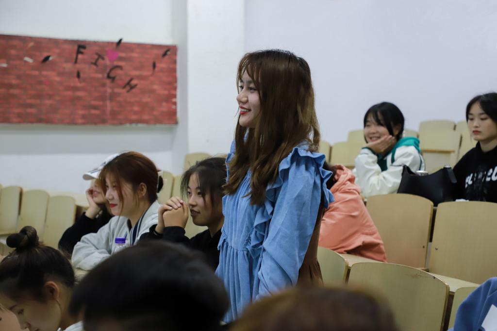 “有人知道‘杀猪盘’式诈骗手法吗?”活动伊始,王丽以电信网络诈骗类型为切入点,向学生们介绍了刷单、裸贷、虚假理财贷等大学生常见的诈骗类型。结合典型案例和亲身经历,王丽从日常生活、电信网络等多方面剖析诈骗分子的惯用手段和作案方式,告诫学生们要提高防电信网络诈骗意识,守护好自己的“钱袋子”,切勿轻信转账信息,树立正确消费观。