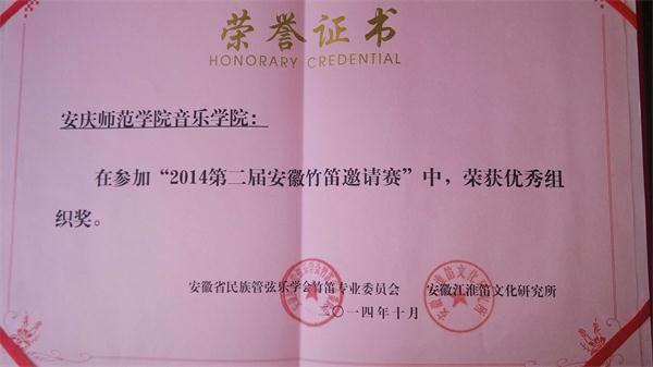 10月3日至5日,在安徽省音民族管弦乐学会主办,安徽师范大学太阳集团tyc9728器乐系协办的的第二届安徽竹笛邀请赛中,我院7名学生进入专业组决赛,获优异成绩。