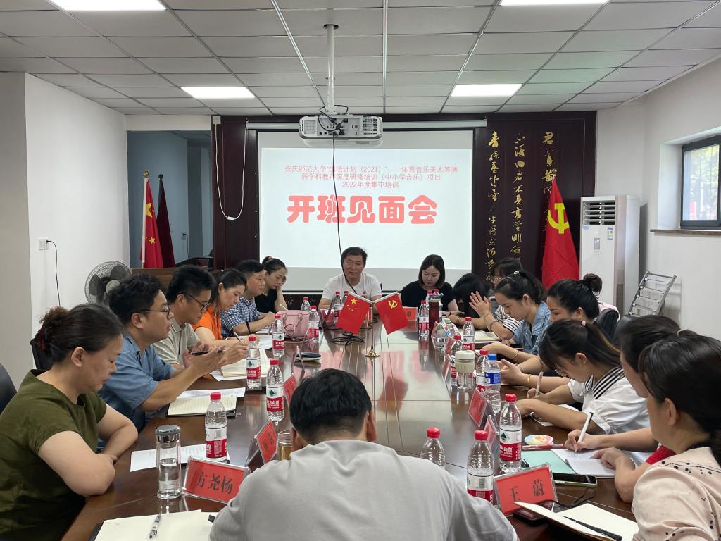8月15日,“国培计划”安徽省体育音乐美术等薄弱学科教师深度研修班(中小学音乐)2022年度集中培训在继续教育学院会议室顺利开班。学院党委书记张铭出席会议,项目负责人彭传山、理论导师、班主任及学员们参加会议。会议由项目首席专家、学院副院长徐冉主持。