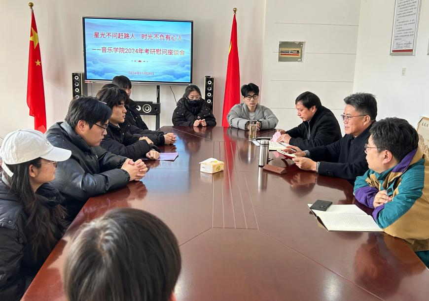 11月26日,学院在艺术楼一楼会议室举办2024年考研学生座谈会,院党委书记张铭、副院长徐冉、副书记肖之进、毕业班辅导员孙文和在校考研学子参加了会议,会议由张铭主持。