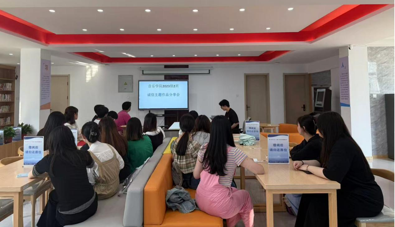 5月29日下午,太阳集团tyc97282023级音乐学2班在10号楼二楼阅览室开展诚信主题作品分享会。