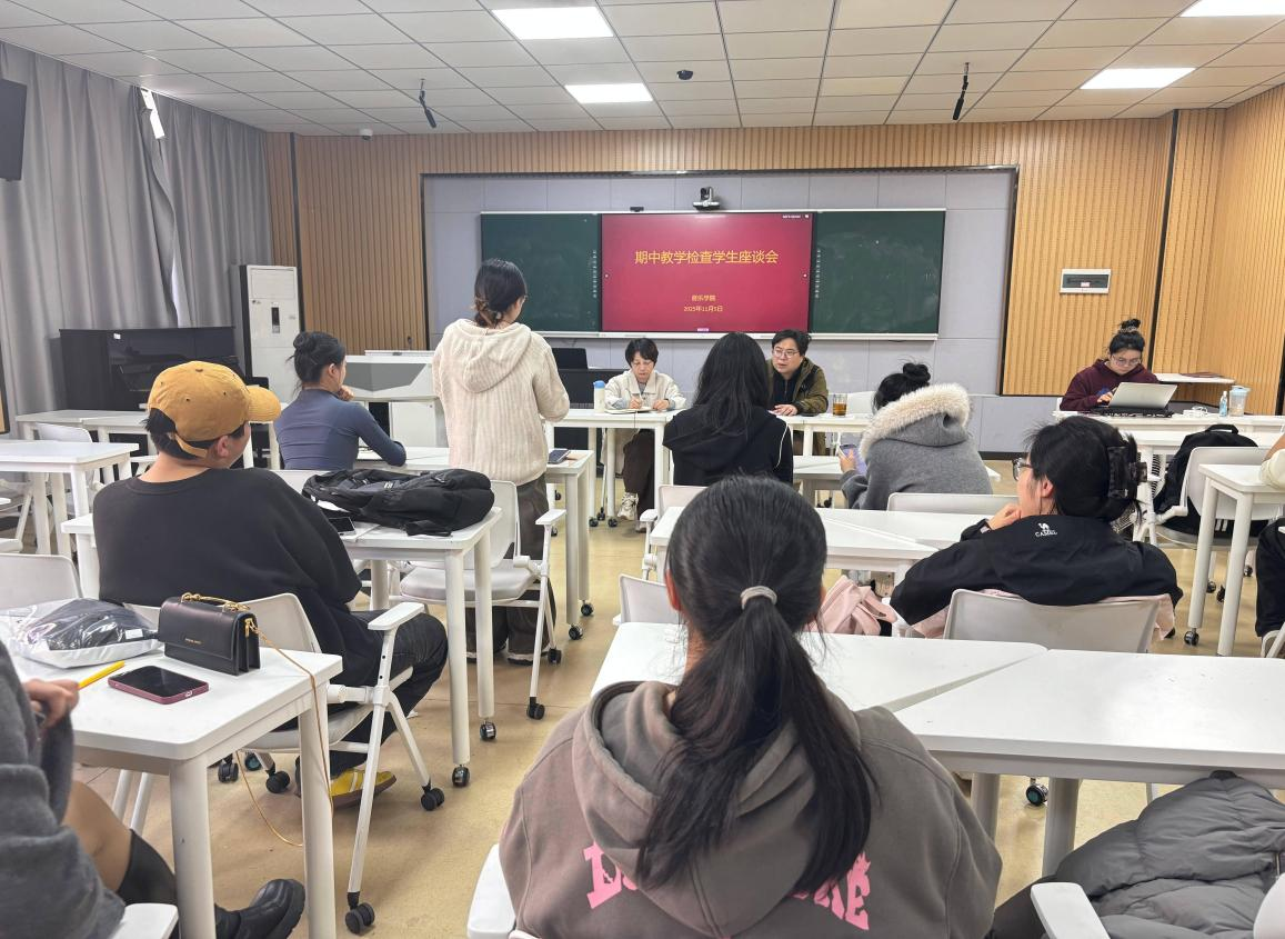 学生座谈会上主要围绕评价课程优秀教师、骨干教师与了解教师教学中存在的问题两方面进行期中教学检查。会上,徐冉向同学们说明了座谈会的要点,学生就教师教学理念、教学态度、教学方法以及学院硬件设施等方面展开讨论并提出自己的建议。徐冉与贾涛认真听取了同学们的意见,对他们提出的问题进行及时解答或记录。最后,徐冉充分肯定了此次学生座谈会带来的积极意义与教学价值。