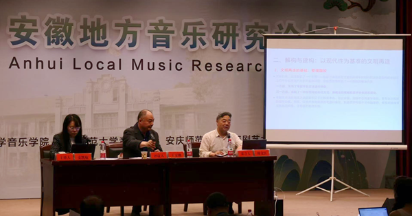王安潮教授对以上四位专家做出评议。他指出,本场报告聚焦于近代史题材的研究,都是具象性的研究,四位学者、四个角度、各个不同。周文臣副教授在胡适文献整理的基础上,观察了胡适的音乐哲学观的问题。我们知道,胡适不仅参与了新文化运动中的歌词创作,与众多的音乐家都有合作,还参与到歌谣的搜集工作中,从周老师的研究中我们能够看出胡适音乐哲学的当代表达。中国艺术学院的在读博士生李睿针对《安徽音乐》的期刊进行研究,是一个非常新颖的研究角度。《安徽音乐》的办刊格局很大,关注的国内外前沿的研究成果,但到了90年代却陨落了。李睿学者的研究让我们看到了尘封的近代音乐史料,研究价值非常高。徐涛老师关注的是在地文化的花戏楼,选题视角非常独特,他的研究中还特别注意到了图像与艺术方面的联络。韩雨老师关于洪山戏的研究也是非常有价值的,因为洪山戏作为濒临失传剧种的代表,进行针对性的研究对于保护与传承非物质文遗产是非常重要的。总而言之,本场报告紧抓主题、深入浅出,展示了很多新的研究视角。(撰稿:张源宁 摄影:学生记者 何长艳 杨天禹 审核:高艳)
