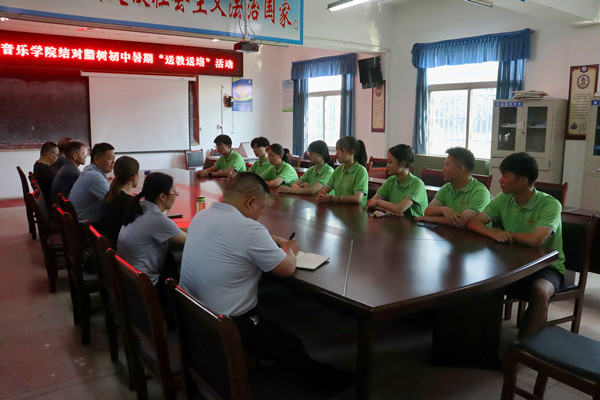 史志学在会上致辞,介绍了腊树初级中学的基本情况,以及学校留守儿童较多、缺乏音乐师资等现状,并对我院的支持及团队的热情表示感谢。他回顾了往年我院在该校的暑期“三下乡”实践活动,指出“音为爱”实践团的活动将高校与农村中学联系起来,填补了腊树初级中学艺术教育的稀缺,帮助学生丰富知识、培养兴趣爱好、提升艺术素养;同时,实践活动带动青年学生走进农村,深入了解基层学校的教育水平及学生的学习生活情况,帮助学生深入了解社会。他希望团队成员用爱心和耐心教学,通过艺术教学实践活动融汇开展好特色劳动教育,加强学校的美育发展,促进学生“德智体美劳”全面发展,同时团队成员在实践活动中“教学相长”,实现个人的成长。