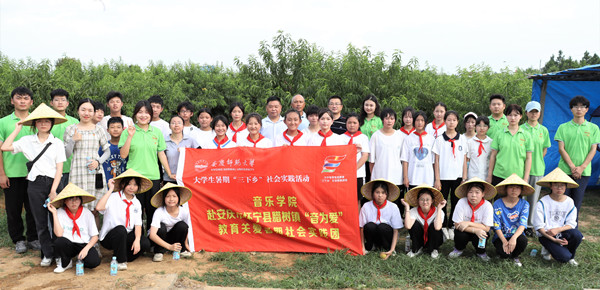 “桃树花费三年的时间才结满这一树丰硕的黄桃,就像大家刻苦努力,辛勤‘浇灌’一片心田,三年后必然结出胜利的果实。”腊树初中的校长史志学以桃树为引,勉励学生踔厉奋发。“劳动创造一切。”他以果农顶着酷暑作业以及寒来暑往维护施肥的实例,告诉同学们劳动创造美好生活的道理。他表示,在“音为爱”暑期实践团成员的教学下,一个个音符已经将学生们在艺术领域的空白谱写成美妙的曲调,他希望学生们热爱音乐和劳动,用勤劳的双手促进自身的成长。
