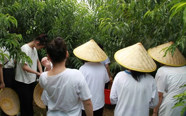 桃园现场,同学们戴着斗笠穿梭在一片绿色之中,或停下脚步采摘,或左顾右盼找寻,排排桃树间隙中不时传来欢声笑语。“这个黄桃好大”“绿色的桃还得多吸收点营养”“桃园阳光太足”……摘到黄桃后,学生们争相比较大小。不少学生表示,亲自摘下的黄桃比“现成的”吃起来更甜、更满足。