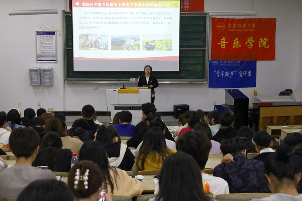 “十九届六中全会是一场载入史册的重要会议,召开于中国共产党成立100周年,是在新时代背景下党向人民、向历史交出的一份满意的答卷。”宣讲团成员介绍,党历经百年风雨,实现了从站起来、富起来到强起来的伟大历史性飞跃。宣讲结合提问、文字穿插视频、理论融入实例……宣讲团成员用视频介绍了柬埔寨男孩沙利来华求学的事例,讲述了我国在促进“一带一路”沿线国家发展、影响世界历史进程以及解决人类重要问题中发挥的重要作用;用图片对比展现我国百年巨变,以耶鲁大学毕业生秦玥飞返乡当村官的事迹展现青年的担当。随后,宣讲团成员向台下学生提出倡导:“我们应当做担当作为的实践者,做笃学敏行的表率者,做优良作风的践行者。”