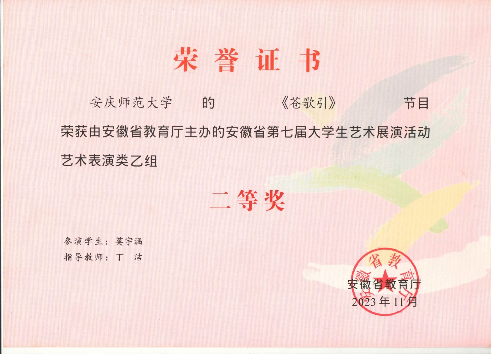 近日,在安徽省第七届大学生艺术展演活动中,我院师生凭借出色的表现,斩获8项奖项。