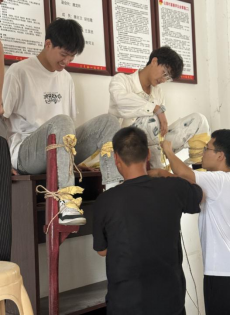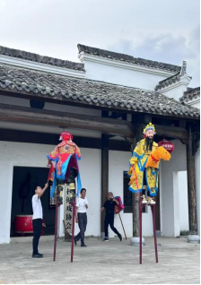 下午研学团队参观考察山湖村傩戏传承所,山湖村傩戏协会为我院一行展示了一场精妙绝伦的傩戏高跷马和舞伞表演,演员们踩上高跷,带上面具,威严感扑面而来,心中更多的是震撼。男生们体验学习了一下踩高跷,站起来都很艰难,老师们为了传承这一文化瑰宝,付出了大量的努力和汗水,也更加让我们体会到了傩戏所蕴含的文化内涵和精神价值。