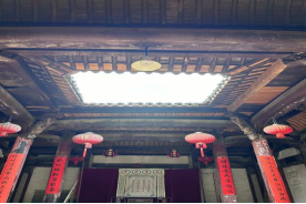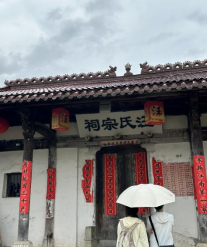傩文化,作为中国非物质文化遗产的重要组成部分,以其神秘的面具、独特的仪式和丰富的民间传说而闻名。傩戏是富有宗教色彩的一种民间艺术。在安徽池州一带流行的傩戏是我国现存的“最古老、最完整”的古戏曲之一,有“戏曲活化石”之称。学生们在老师的带领下,深入池州的乡村,与当地傩文化传承人进行了深入的交流和学习。我们的第一站是荡里姚村的姚氏宗祠,姚氏宗祠是一处明、清时期祠堂建筑。祠堂三进,为台梁架砖木结构,梁枋雕刻较少,正中是大厅,两侧为厢房,后进祭祖台两边镶有明嘉靖二十五年(公元1546年)来龙碑记和嘉庆二十五年(公元1816年)重修建祠家谱碑刻。祠前广场是荡里姚氏家族演出傩戏的场所。广场顶端筑有半月形放生池,并立有现代碑刻,记载了唐代李白到此而作《宿虾糊》诗句。
