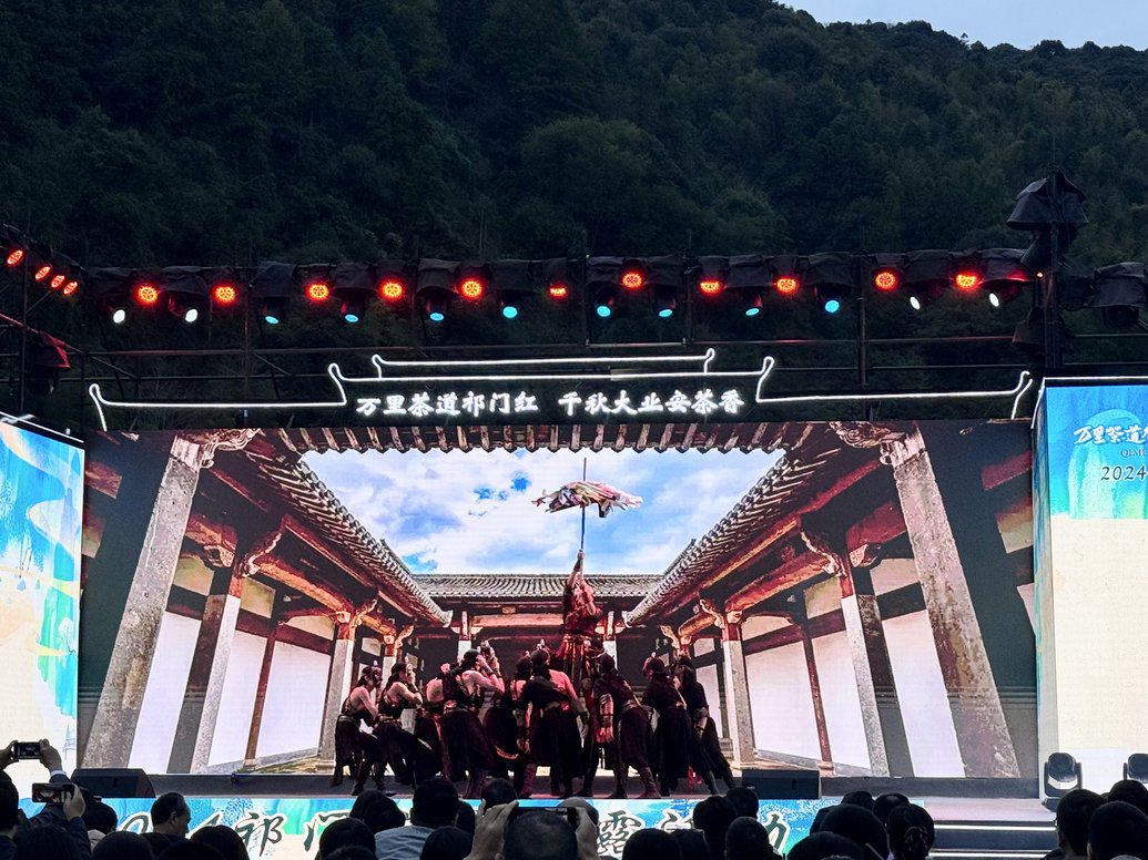 学院选送的舞蹈《日月祈》在祁门阊江之畔拉开了“万里茶道祁门红 千秋大业安茶香”2024安茶夜露活动的序幕。《日月祈》是我院青年教师程睿创作的舞蹈作品,是对贵池和祁门等地傩舞傩戏多年研究的成果呈现,通过丰富的舞蹈动作和独特的表演形式,展现了傩舞的古朴厚重和无限魅力,讲述了人与自然和谐共生的故事,寓意着对日月星辰的崇拜与祈愿,以及对美好生活的向往和追求。在舞台上,舞者们身着传统服饰,手持五色伞,戴童子面具以精湛的舞技和深情的演绎,将观众带入了一个充满神秘与美丽的世界。