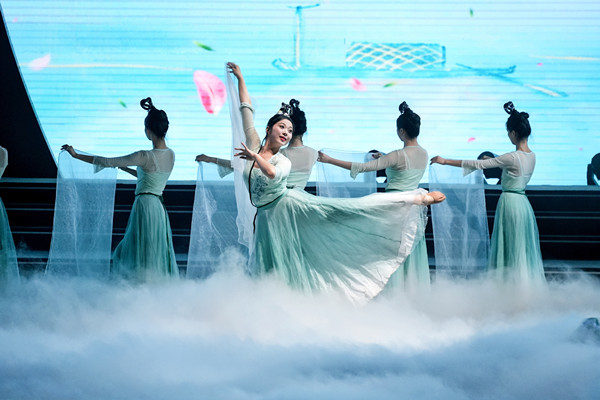 手持轻纱,随乐翩舞,古典舞《浣溪沙》柔美婉约地展现了江南水乡的诗画意境;巧用舞蹈语言、演绎千古美德,歌伴舞《六尺巷》以典故为背景,让观众感受到“和为贵”在现代社会中的意义;黄梅歌《平安吉庆》用现代舞蹈配合传统黄梅戏戏腔娓娓唱出对家乡的祝愿……