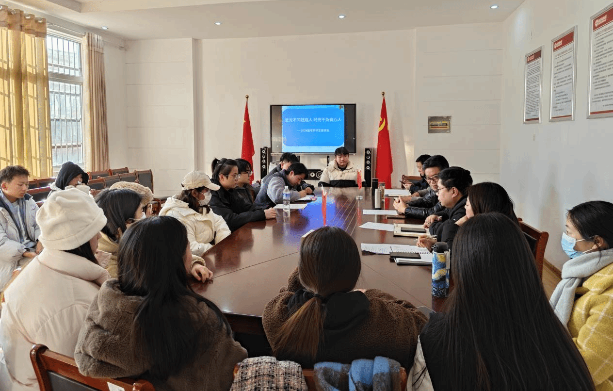 12月21日,在考研的最后冲刺阶段,为鼓舞士气、坚定信心,同时缓解备考压力,我院举办考研学生座谈会。学院领导班子全体成员、毕业班辅导员参加座谈会,与考研学子齐聚一堂,共同为梦想助力、为未来喝彩。