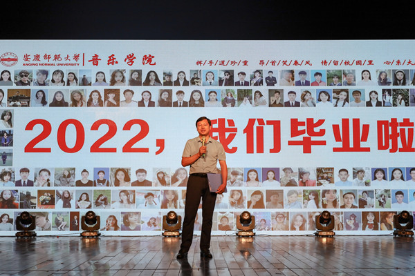 “节目太精彩了!每处细节都流露着演员们的‘匠心’。”精彩的演出让音乐学毕业生邢子欣颇为感动,她觉得每位演员都“卯”足了力气,完美地呈现了舞台效果。平常泪点极高的她,这次也忍不住“泪目”。“祝毕业生们前程似锦,继续发光发热!”“愿你们健康快乐每一天!”……晚会上,学院老师和往届学长们还为2022届毕业生录制了专属毕业视频,现场的同学们认真聆听着师长的祝福与勉励,不觉间便红了眼眶。