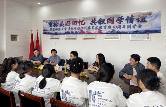 校友们依次发言,向学院汇报了毕业后的工作、生活经历以及取得的成绩。十年的光阴流逝,有的校友在基层一线扎根,有的校友在中小学从事美育工作,有的校友创业成立公司,有的校友升级成为了爸爸妈妈…,伴随着校友们的分享,会议室不时响起阵阵欢笑声和祝福的掌声。在分享经历的时候,校友们纷纷表达对母校培育之情的感激,他们相信自己获得的成功离不开母校的教育和栽培,并表示今后继续坚持学习,完善自己,为母校争光。
