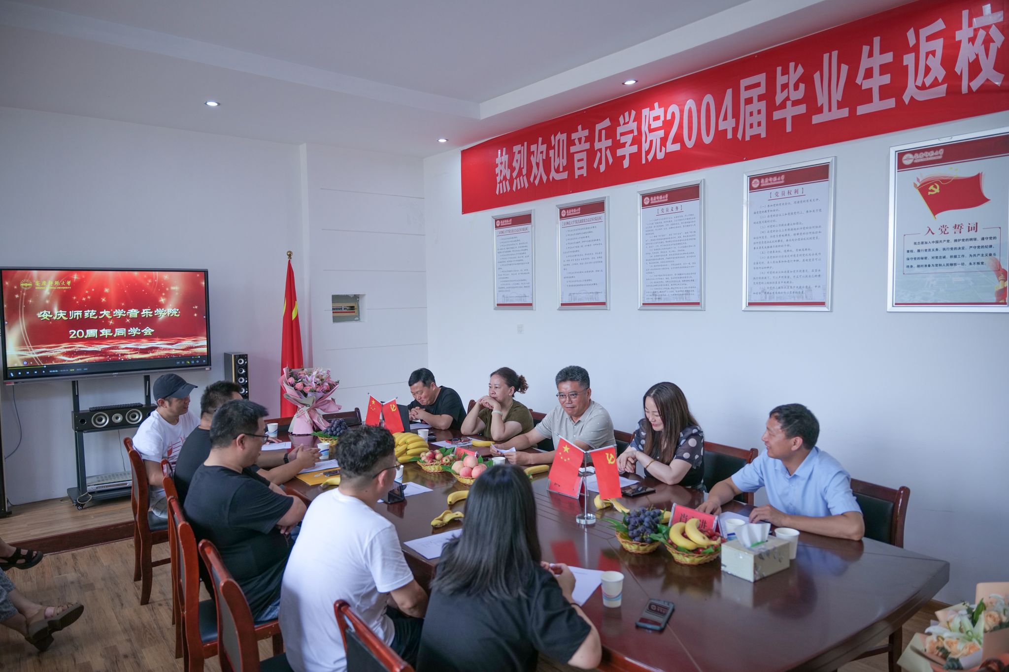 中午,校友们准备了一场丰盛的午宴。宴会上,师生们举杯共庆,欢声笑语不断。学院领导再次向校友们致以诚挚的祝福,希望他们在未来的日子里能够继续携手前行,共创辉煌。校友们也纷纷表示将一如既往地关心和支持母校的发展,为母校的明天贡献自己的力量。午宴上,校友们准备了丰富的节目,演唱了自己的拿手歌曲,还一起演唱了徐玉梅同学特地为这次20年聚会创作的两首歌《当我遇见您》《我在安庆等你》。