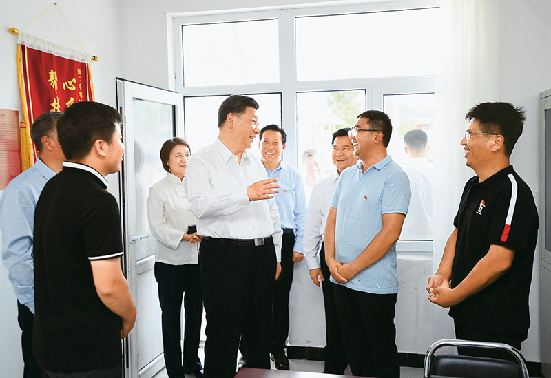 2019年7月15日至16日,中共中央总书记、国家主席、中央军委主席习近平在内蒙古考察并指导开展“不忘初心、牢记使命”主题教育。这是15日下午,习近平在赤峰市喀喇沁旗河南街道马鞍山村党群服务中心了解基层党建、民族团结和乡村振兴情况。新华社记者谢环驰/摄